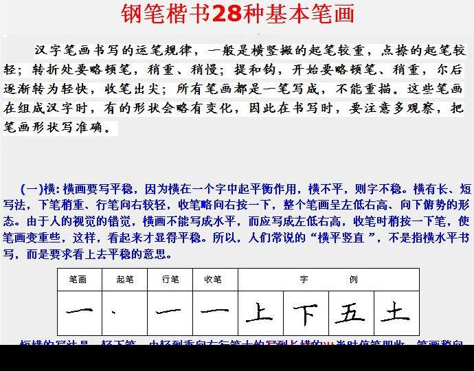 学习汉字运笔规律帖《钢笔楷书28种基本笔画》...