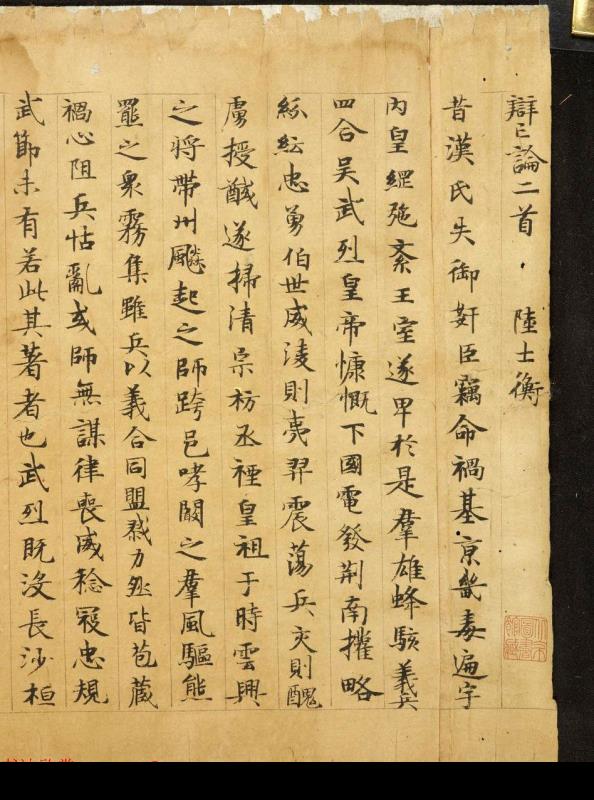 敦煌唐人书《陆机辩亡论上篇》,黄纸墨书,工楷写就,字体舒朗俊
