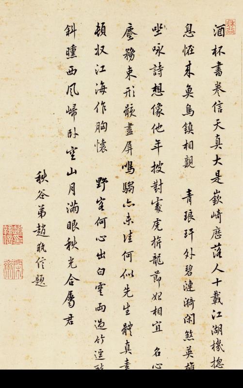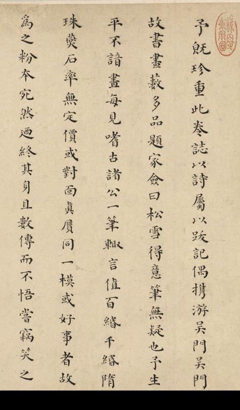 梁廷 楷书题陈文恭手札卷