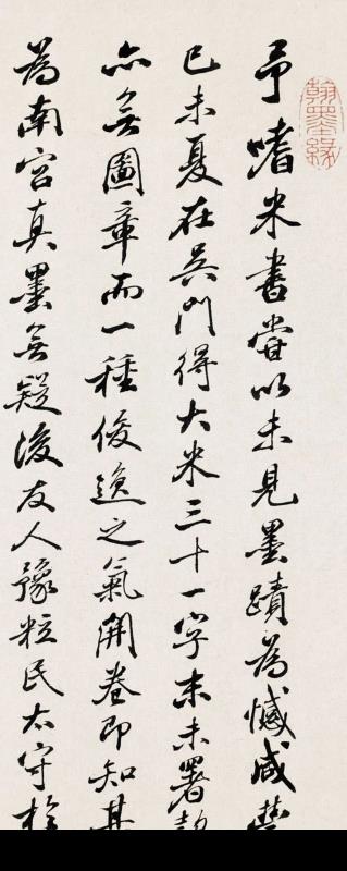 西园主人李翰文行书《题米友仁潇湘奇观图卷》,北京故宫博物院藏