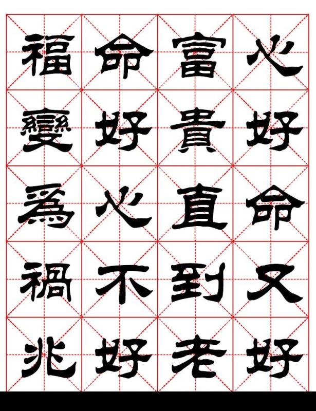 刘炳森隶书字帖欣赏《心命歌》,电脑集字米字格版书法图片四张.