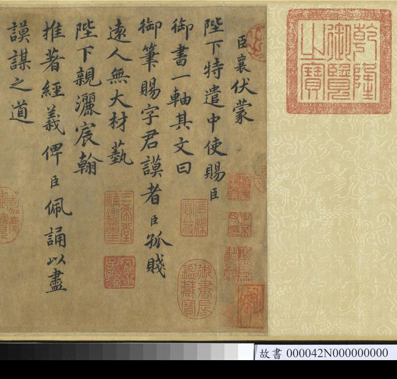 宋蔡襄楷书《自书谢表并诗》卷(疑伪),台北故宫博物院藏。《谢