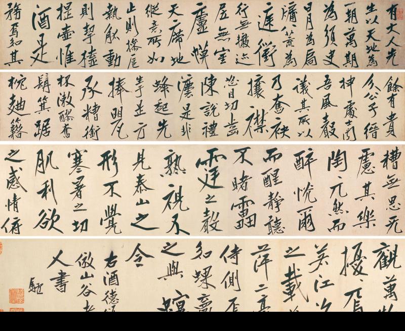 清代朱耷行书长卷欣赏《刘伶酒德颂卷》,尺寸:纵25.7厘米;