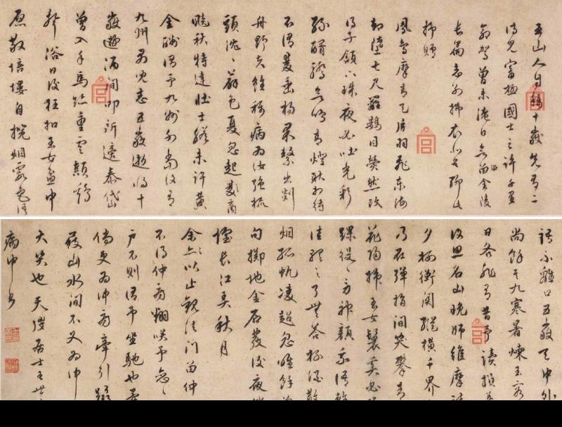 明代王世贞行书赏析《赠王十岳诗卷》,纸本手卷,纵25.8cm