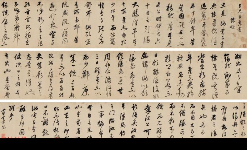 王铎行草书法欣赏《赠郝?清行草诗卷》(新闻柬卷),朵云轩藏。